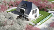 The home for the Family Dr. Merschin in Bad Saarow, nearby Berlin, will be built on a small lot of land at the skirts of a forest. The cowl shaped dormer windows on the top roof were a special wish for the house. Their zestfully curved lines reappear in different elements of the building in order to integrate the theme of the roof into the entirety of the house. On the north side of the house, the layout forms a little courtyards. From there the house is entered through a double height vestibule with gallery. A solid fireplace catches the view. It serves as the anchor of the home family live. Around this central block open space flows. The large glass front towards the south opens into the garden. The arrangements in the house follow aspects of Chinese Feng-Shui teaching.