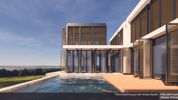 The Layout of Villa Nanjiang is inspired by the traditional south Chinese Stile of the Jiangxi Province. A small courtyards with impluvium locates in front of the main room. Around that courtyard the service- and bedrooms are arranged. The front differs from the traditional closed court as it opens towards the road but the ensemble keeps the ceremonial alignment and the symmetry of the old order. A black and white frieze displays on the central cornice. The middle wing is covered by a curved roof from gray clay tiles. The roof ridge extends at both sides as typical for several southern Chinese areas.