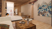 The old Tibetan village is located high above the deep cutting Yellow River, in a region marked by scarce rain fall and dry winds. Many villagers left the remote inaccessible mountain ridge for opportunities to far away cities. In the framework of poverty relief programs the old court-yard buildings are converted into hotels. For their management the local population receives returns.