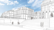 The urban planning was part of a Europan Competition in 2007, developed at the TU Dresden. The eastern suburb Poliana at the Slovenian capital Ljubljana was to be re-urbanized along the river Ljubjanitza. Three cluster of urban blocks, parallel to the river, attach the garden houses in the east with the medieval old town. The three cluster are corresponding with a historical flag pole at the entrance to the city. It is made from three joint masts, representing the three nations of the Slovenian people.