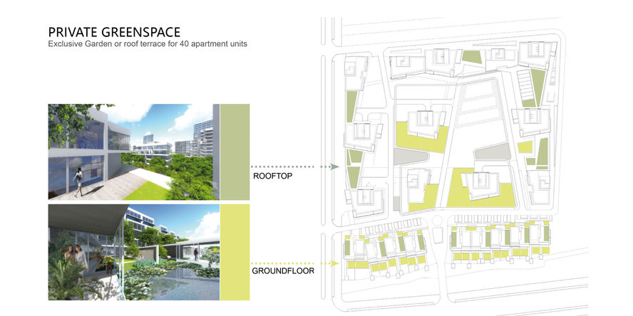 Das Wohnhausprojekt für den Projektentwickler CEG an der Baoqing Straße in Yancheng kombiniert zwei urbane Formen. Die flache Gegend in der Jiangsu Provins is von geraden Kanälen durchzugen, an denen entlang sich längliche Parzellen mit jeweils einem Gehöft reien. Die Frontreihe der Siedlung übernimmt diese Struktur aus der Nachbarschaft und setzt sie entlang der Straße fort. Nördlich davon sind punktförmige Hochhäuser geplant. Die Äußeren Gebäude sind durch eine zweistöckiges Podest verbunden und grenzen den Innenraum nach Außen ab. Der zentrale Garten ist auf eine Bühne zwischen den beiden hohen Gebäuden am Nordrand ausgerichtet. Zum Projektkonzept von CEG gehört die Verbindung aus zukunftsweisender Architektur und Lifestyle, mit Musik, Kunst und Sport. So sind auch eine Laufstrecke und ein Schwimmbad auf dem Grundstück geplant.